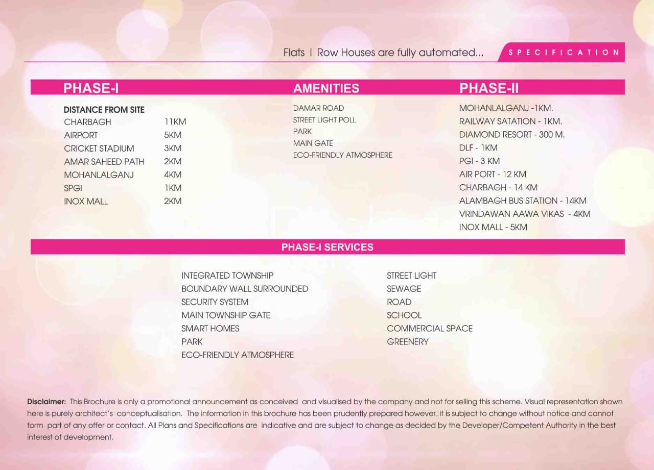 Some of the near by highlights of this projects are the fact that it is just 50 metre away from Pt. Deen Dayal Upadhyay park, 50 metre from nearby market, 1k.m. from S.G.P.G.I, 2.5 k.m. away from INOX Mall and LULU Mall, 11 k.m. away from Charbagh Railway Station, 7 k.m. from Airport, 2.5 k.m. from Shaheed Path and just 100 metre away from Auto, Bus Stop and upcoming Metro Station. All the Flats and Row Houses build in these projects are extremally high quality when it comes to construction. Buyers can visit and see the houses of which possession has been allotted by the company to check the branded Tiles, Washroom fitting, Electrical fixtures, Wooden work, Plastic paint and other such interiors.